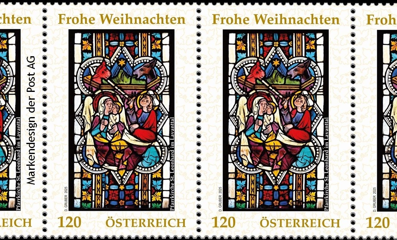 es erfüllt uns in Bad St. Leonhard im Lavanttal mit großer Freude und Dankbarkeit, dass die diesjährige Weihnachtsbriefmarke ein Motiv aus unserer Pfarr- und Wallfahrtskirche St. Leonhard zeigt. Eines der farbenprächtigen gotischen Glasfenster aus dem 14. Jahrhundert leuchtet damit weit über Bad St. Leonhard hinaus. Die bunten Farben erinnern uns daran, dass die Botschaft von Weihnachten – Gott wird Mensch – auch heute unser Leben erhellen und unseren Alltag mit Hoffnung und Zuversicht durchdringen möchte.